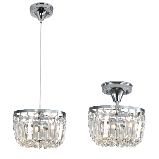 2 in 1 Pendant and Ceiling Light, Polished Chrome and Crystal Fitting with Clear Cable