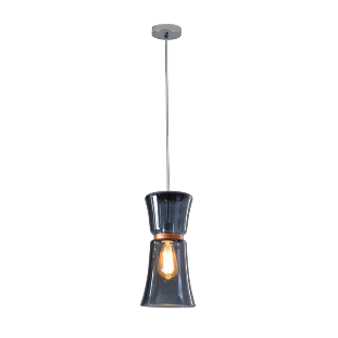Copper Lined Glass Pendant, Chrome with Smokey Blue Glass