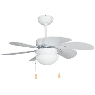 Metal White Ceiling Fan with opal glass, pull chain and 3 speed control