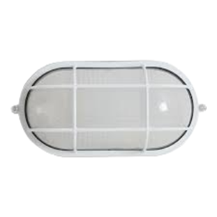 Oval Bulkhead with Grid, Small, White, 60W E27