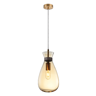 Pouch Glass Pendant,?Brass with Amber Glass, 40W E27